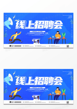 简约蓝色线上招聘会招聘会在线招聘展板招聘会展板