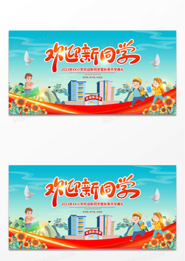 大气简约开学季欢迎新同学开学典礼宣传展板设计