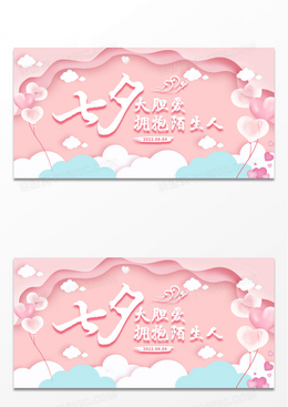 浪漫粉丝简约七夕情人节粉嫩少女心活动展板