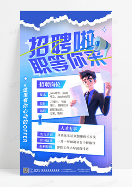 蓝色撕纸风招聘啦职等你来招聘手机宣传海报