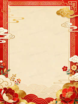 红色牡丹烫金祥云喜庆中国风背景