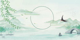 古风水墨小清新石桥燕子背景