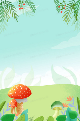 清新卡通小清新春天植物蘑菇背景