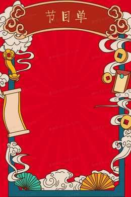 红色嘻哈国潮新年节目单背景