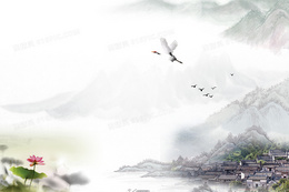 中式水彩笔触装饰新年喜庆佳节海报背景素材