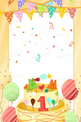 快乐手绘黄色系生日邀请函蛋糕派对背景