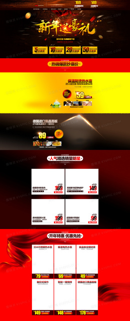 大气新年豪礼电器红色店铺首页背景