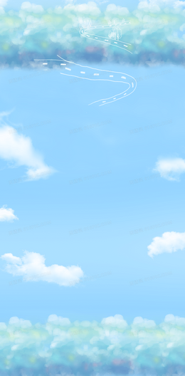 卡通天空草原店铺背景