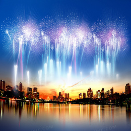 城市夜景烟花背景