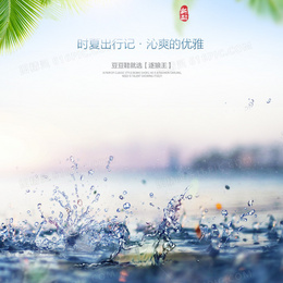 淘宝夏季饮品清新冰块水纹直通车钻展背景