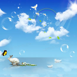 清新彩虹兔子背景图