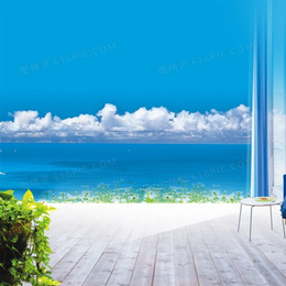 蓝色天空清新女装PSD分层主图背景素材