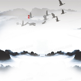 中国风山水飞鸟毛笔PSD分层主图背景素材