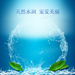 飞溅水花化妆品蓝色PSD分层主图背景素材
