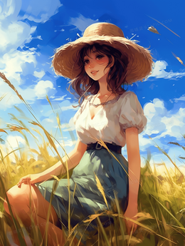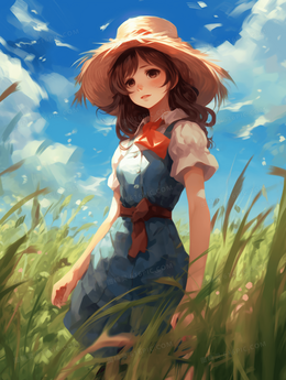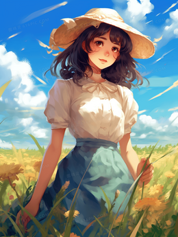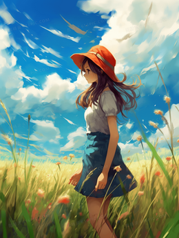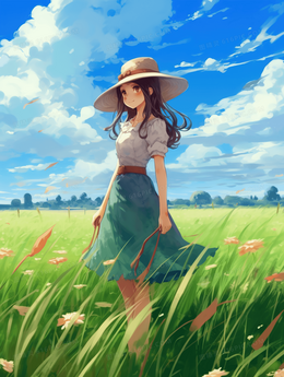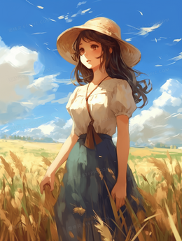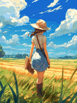 夏季女孩田野唯美插画