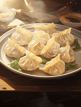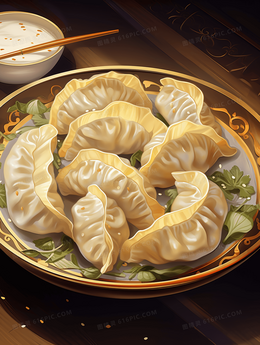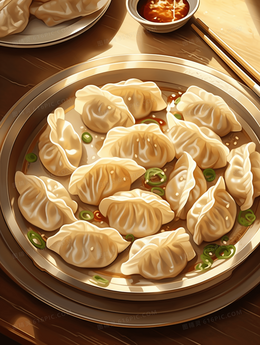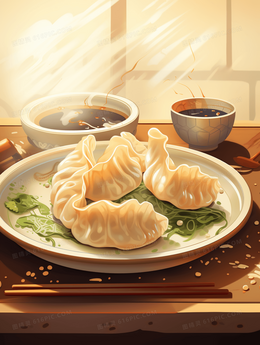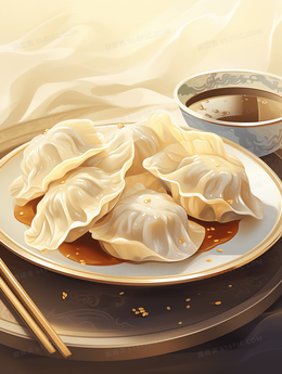 美味水饺春节节日插画