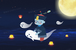 > 中元节小僵尸鬼混创意插画