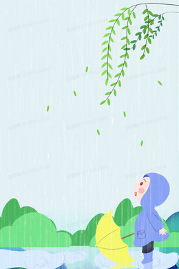 插画风格节气谷雨雨水春天卡通手绘背景