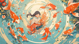 > 荷塘里的锦鲤鱼插画