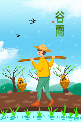 谷雨节气种地农民插画