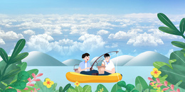 卡通小清新钓鱼户外运动宣传背景