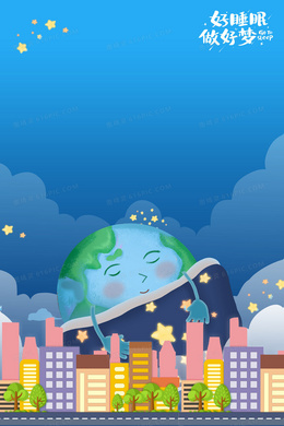 世界睡眠日卡通城市夜晚星空背景
