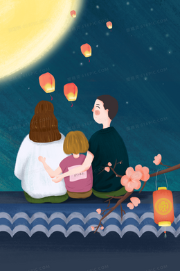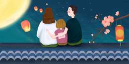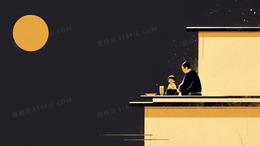 蓝色唯美简约大气中秋节玉兔赏月背景
