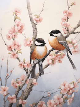 中国风花鸟绘画插画