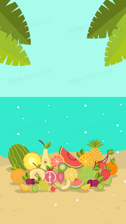 扁平化大海沙滩椰树场景背景