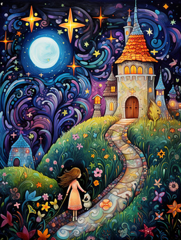 梦幻城堡手绘插画风背景