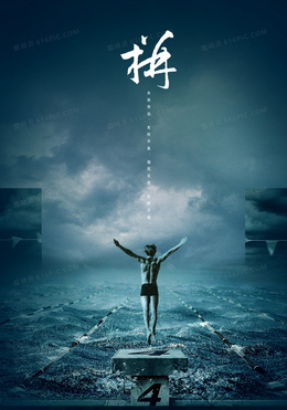 蓝色科技风企业文狼性奋进拼搏海报背景