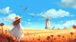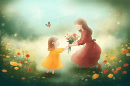 卡通风唯美花园中可爱的小女孩给妈妈献花插图