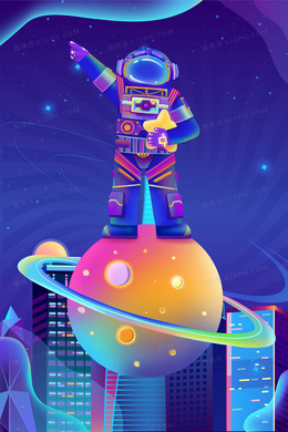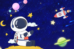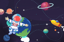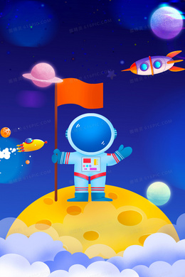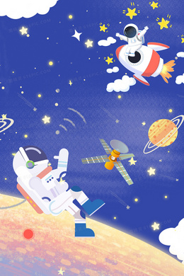 宇宙星空宇航员乘坐火箭环游太空航天日插画
