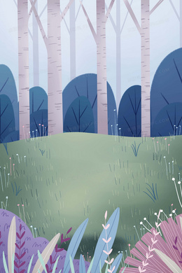 草地草坪森林大树野外游玩卡通背景