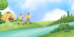 卡通手绘野外探险插画背景
