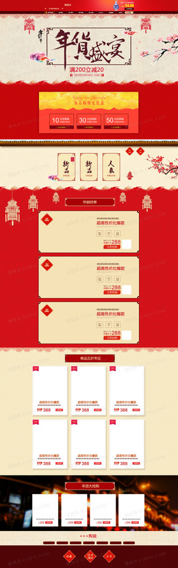 当前位置: 图精灵 > 背景图库 > 店铺背景 > 红色中国风年货节首页背景