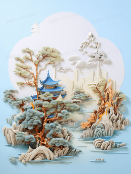 当前位置: 图精灵 > 背景图库 > 插画 > 中国风立体浮雕山水风景建筑意境插画