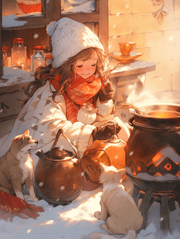 当前位置: 图精灵 > 背景图库 > 插画 > 冬日在火炉旁取暖的小女孩和狗狗们插画