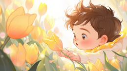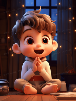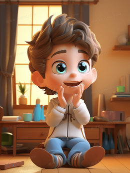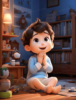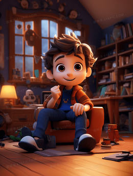 书房里坐着听故事的小男孩插画