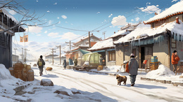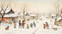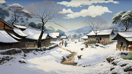 冬日村庄农舍生活雪景插画