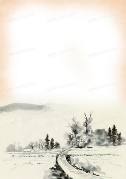 复古农田村庄中国风水墨背景素材