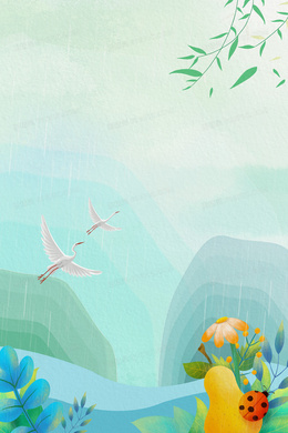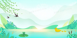 卡通创意春意春天春季惊蛰传统节日节庆绿色背景