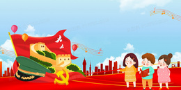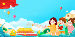卡通风歌唱祖国卡通党建童心向党背景