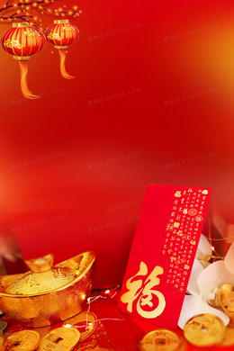 红色喜庆新年元素鞭炮元宝摄影图合成背景