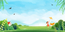 春天万物复苏踏青郊游放风筝背景
