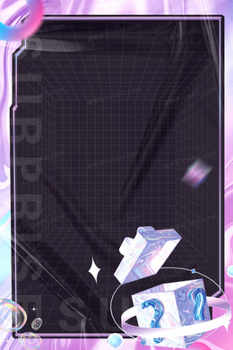 酸性潮流紫色炫彩惊喜拆盲盒边框背景