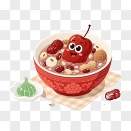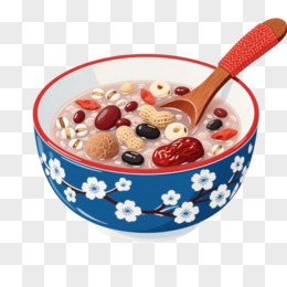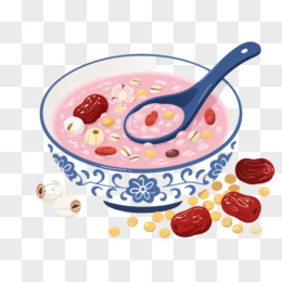 蓝白瓷碗八宝粥插画风格元素