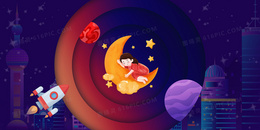 扁平化蓝色卡通风创意便纸条城市星空海报背景
