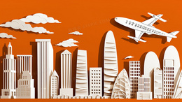 > 剪纸风城市高楼景观