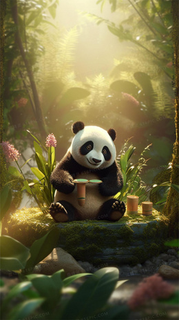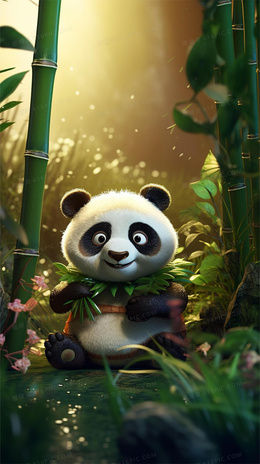 当前位置: 图精灵 > 背景图库 > 插画 > 清新竹林里一只可爱的熊猫在吃竹子